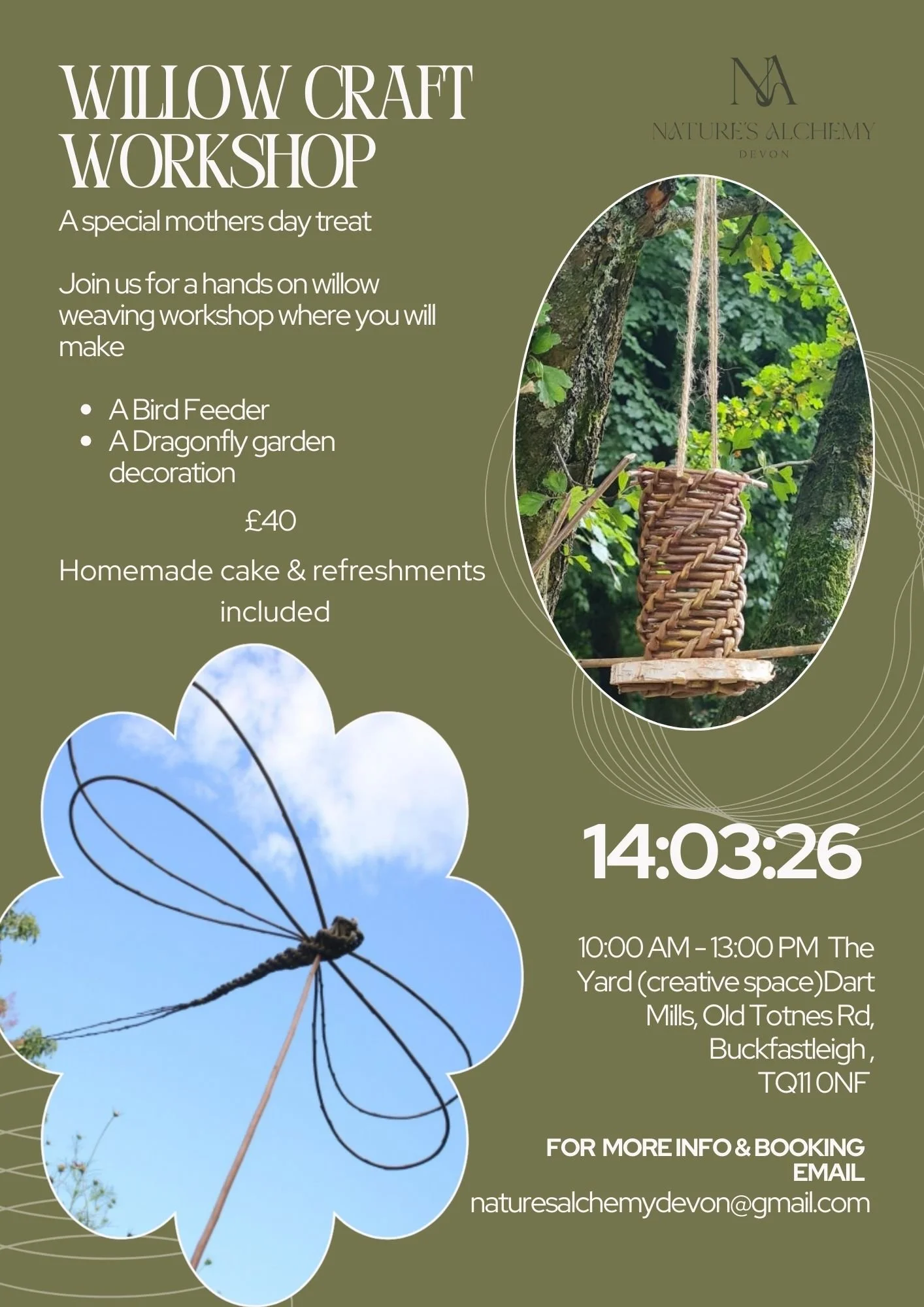 I offer versatile workshops tailored to various needs, whether it's for private groups, birthdays, or special occasions. My workshops encompass a range of crafts and skills, including basket weaving, willow craft, wet felting, and the art of creating herbal tinctures and ointments. Additionally, I provide sessions on foraging and crafting natural beauty products.